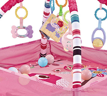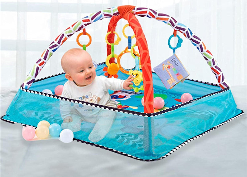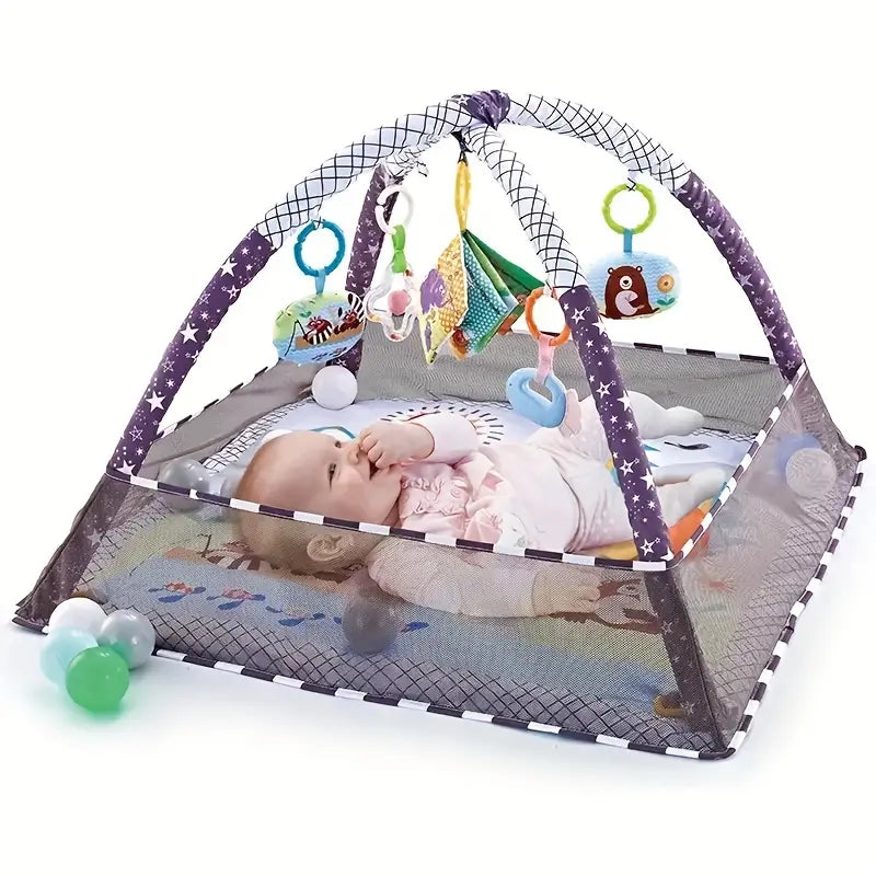 The baby activity gym includes a tummy time mat, which is crucial for a baby's physical development. Tummy time helps strengthen neck and upper body muscles, and the activity gym provides a comfortable and visually appealing space for this essential activity.