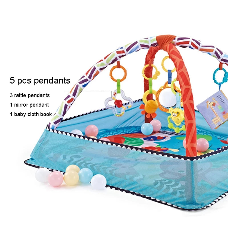 Baby activity gym comes with various hanging toys, mirrors, and textured mats that stimulate baby's senses. This helps in the development of their visual, auditory, and tactile senses, enhancing their overall sensory perception.